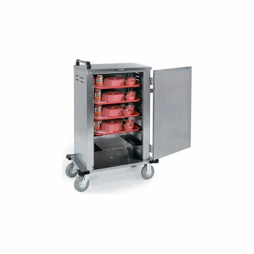 Single compartment accommodates 14″ x 18″ (356 x 457 mm) or 15″ x 20″ (381 x 508 mm) trays. Perfect for heated pellet systems with insulated covers used for healthcare room service or late trays. Type 304 stainless steel construction is easily cleaned and sanitized. Stainless steel tray ledge panels are removable and easy to clean. Paddle latch door closure assures positive door closure and convenient one-hand opening. Interior floor drain facilitates cleaning. Welded push handle for easy maneuverability. Door conveniently folds 270 degrees out of your way. Includes bottom corner bumpers to protect walls and doors Rolls easily and quietly on 6″ casters (2 ea. fixed, 2 ea. swivel) with 2″ wide cushion tread donut wheels. 6 Tray capacity.
