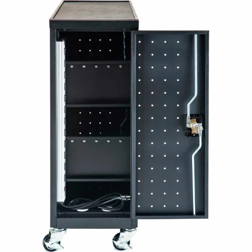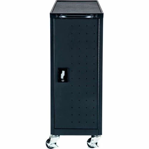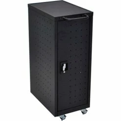 At only 14″ wide, this slender charging cart provides a space-saving solution for keeping laptops and Chromebooks fully charged and safely stored. Solid steel construction provides strong protection and, like all Luxor charging carts, rubber-coated dividers that won’t scratch devices and provide impact protection during transit. Its four casters make it easy to move from location to location and assembly is simple – just attach the casters and handle and you’re ready to roll.