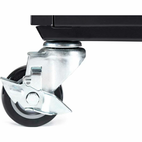 - Four 3″ casters, two with locking brakes, and handle for easy maneuverability