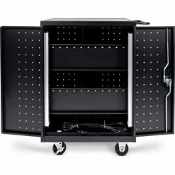 Functionality meets durability with a Luxor Laptop / Chromebook Charging Cart. Lockable steel doors and rolling casters provide a rugged security/storage solution that’s easy to move. And with an electrical assembly and cord management system built inside the back of the unit, you’re able to organize and charge multiple devices at once – from laptops to Chromebooks. Rubber-coated dividers won’t scratch devices and help provide impact protection during transit. And assembly is simple – just attach the casters and handle and you’re ready to roll.