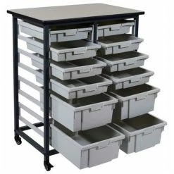 Versatile and functional, these storage units are ideal for schools, garages, or industrial facilities. Conveniently store and systematize your daily essentials in Luxor’s Mobile Bin System. The spacious gray bins are available in two sizes and include an area for standard labels that dually operates as a handle for easy accessibility to stored items. Choose from Luxor’s double row options with 8, 12, or 16 bins to create an effective storage solution that’s perfect for any environment.