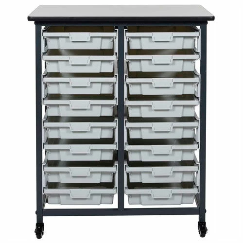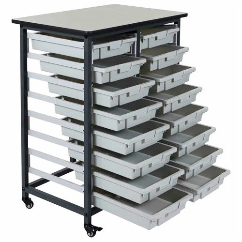 Versatile and functional, these storage units are ideal for schools, garages, or industrial facilities. Conveniently store and systematize your daily essentials in Luxor’s Mobile Bin System. The spacious gray bins are available in two sizes and include an area for standard labels that dually operates as a handle for easy accessibility to stored items. Choose from Luxor’s double row options with 8, 12, or 16 bins to create an effective storage solution that’s perfect for any environment.