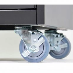 - Four non-marring 4″ casters, two with locking brakes, and handle for easy maneuverability
