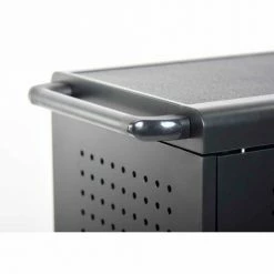 - Charges up to 30 tablets or Chromebooks (15 per shelf)