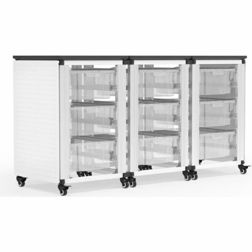 Luxor Modular Classroom Storage Cart, 3 Side by Side Modules, 9 Large Bins, 18" x 54" x 28", White