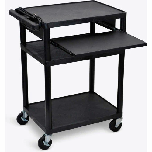 Cart with Pull-Out Laptop Shelf features a 19-½” W x 16″ D retractable shelf that is perfect for use with laptop or notebook computers.