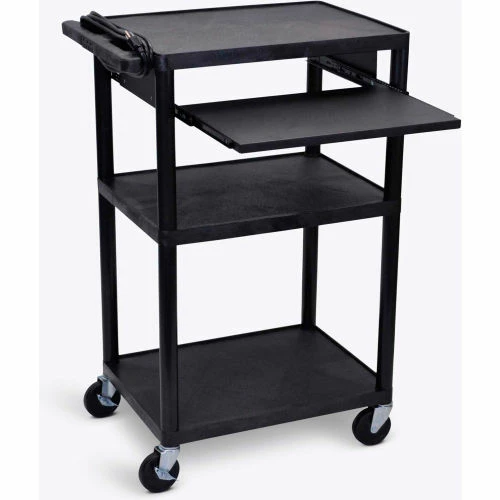 Cart with Pull-Out Laptop Shelf features a 19-½” W x 16″ D retractable shelf that is perfect for use with laptop or notebook computers.
