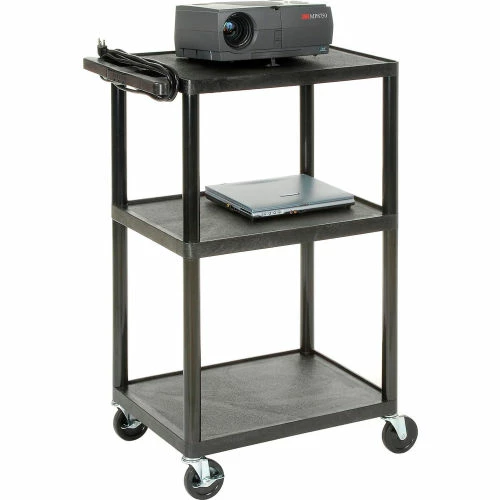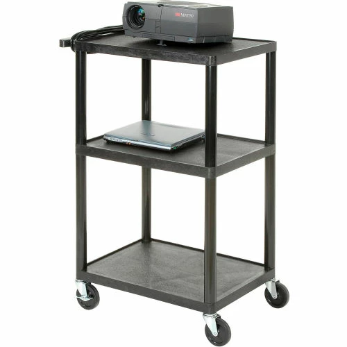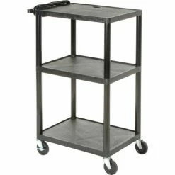 Luxor Plastic Audio Visual & Instrument Cart 24 x 18 x 42 Three Shelves – 250lb capacity