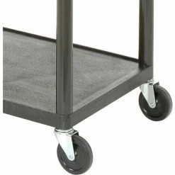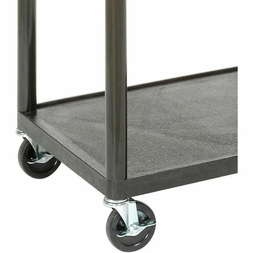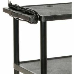Convenient 3-outlet power strip with 15 ft. 3-wire cord provides at-the-source electricity. Transport, store and secure valuable, sensitive equipment. Frame and shelves constructed of tough, double-reinforced, non-conductive black ABS structural foam. Built-in handle. Shelves have retaining lip and textured surface to prevent equipment from sliding. 250 lb. capacity. Easy-rolling 4″ ball bearing non-marring rubber wheel casters, 4 swivel (2 locking). Ready to assemble.