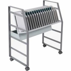 - Easily transports tablets/Chromebooks with four casters and two locking brakes