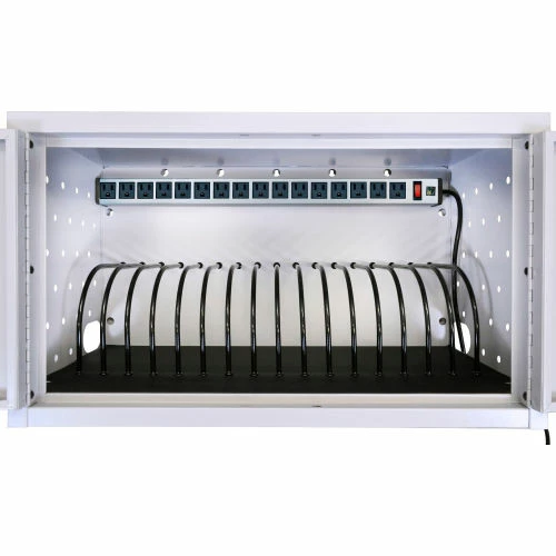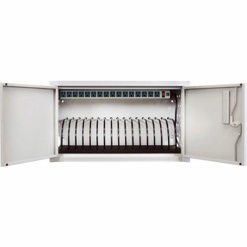 Do away with cord clutter while safely ensuring devices are always charged and ready for use. Perfect for small offices, classrooms and libraries, Luxor Wall / Desk Tablet Charging Cabinets provide a strong, simple design that’s reliably secure yet affordably priced. A steel shell with lockable door coupled with a padded interior and rubber-coated dividers protect your devices, and the compact size makes Luxor Tablet Charging Cabinets great for wall mount or desktop use.