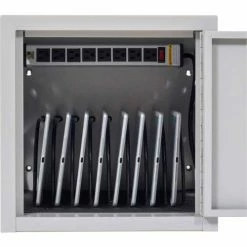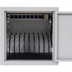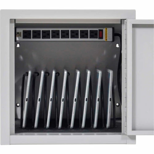 Conveniently store and charge your tablets with Luxor’s compact 8-Device Wall/Desk Charging Station. The padded interior and rubber-coated dividers provide protection while charging each device simultaneously. The steel unit does away with charging cord clutter and avoids drawing unnecessary attention to your IT equipment. Ventilated sides allow constant airflow to eliminate overheating, even when the front door is closed and locked for safe keeping. Unit arrives fully assembled and ready to organize your work area.