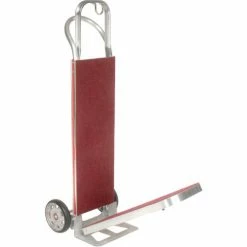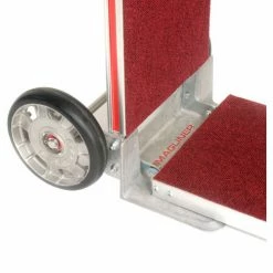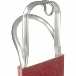 The Magliner Aristocart® hand truck is the perfect alternative to larger four-wheeled bellman carts for moving luggage in tight spaces. Cart features a red carpeted deck and noseplate to protect cargo. Folding 30″L noseplate carries oversized luggage with ease. Lightweight aluminum construction for years of service and weighs only 30 lbs. Hotel hand truck features a versatile retractable garment hook and rolls smoothly on 8″ mold-on rubber tires. Assembled easily.