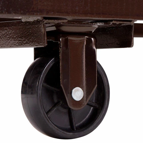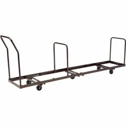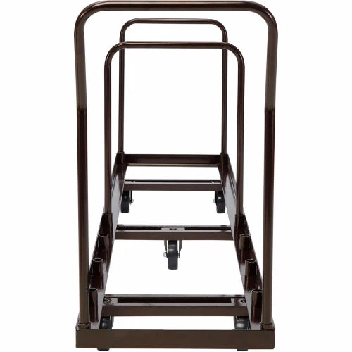 The DY1400 Chair Dolly stores and transports 50 NPS folding chairs in the vertical upright position. Features three institutional-grade tubular handles and five nylon casters (two that swivel) to enable easy maneuvering of a fully-loaded dolly. Each caster boasts a 275 lb. weight capacity for a total of 1375 lbs. Solid steel construction has a brown powder-coated paint finish.