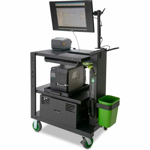 Boost convenience and mobility in your workplace with the Newcastle Systems PC Series Mobile Powered Workstation. This PC Series cart is a mobile platform that not only provides the same flexible mobility as our lighter carts, but allows for expanded possibilities with room for a laser printer, supplies, inventory and more. With a 30″ tabletop, it can actually serve as a mobile workspace that has room for your laptop and your paperwork too.