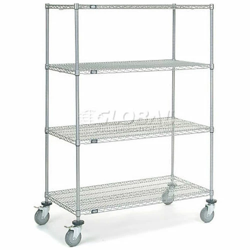 - Four durable, corrosion-resistant 48″ x 24″ wire shelves