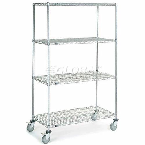 - Four durable, corrosion-resistant 48″ x 24″ wire shelves