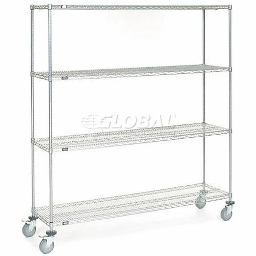 - Four durable, corrosion-resistant 72″ x 18″ wire shelves