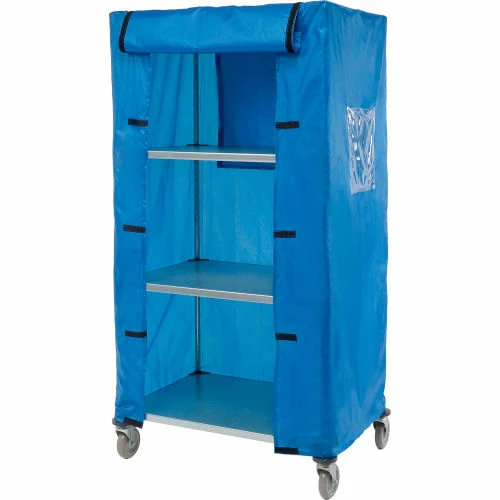 This versatile and economical linen cart is ideal for use in medical facilities or industrial facilities. Linen cart with blue nylon cover protects linens from airborne dust and dirt. Linen cart rolls easily on 5″ all swivel casters (2 with brakes). 1 Year Limited Warranty.
