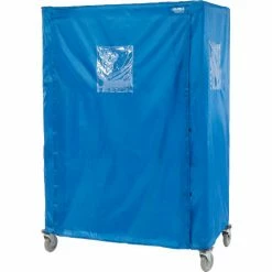 This versatile and economical linen cart is ideal for use in medical facilities or industrial facilities. Linen cart with blue nylon cover protects linens from airborne dust and dirt. Linen cart rolls easily on 5″ all swivel casters (2 with brakes). 1 Year Limited Warranty.