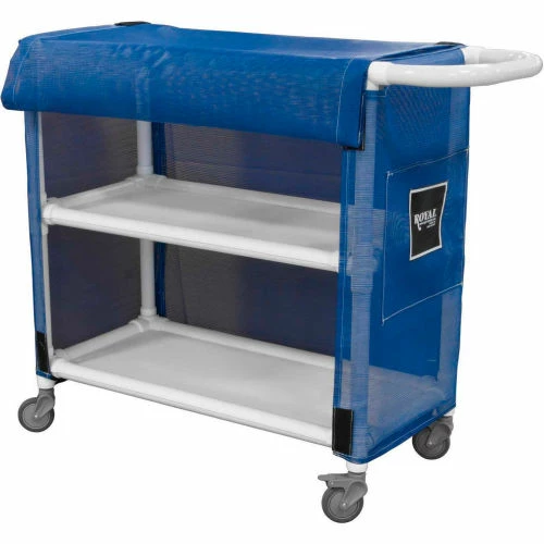 Royal Basket Trucks PVC Linen Cart, 32" – 2 Shelf, Blue Mesh Cover, 2 Sw/2 Sw Lock