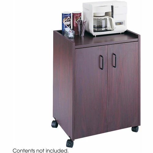 These mobile stands are ideal for office break rooms and offer mobile storage. Easy-to-clean laminate surface. 2 doors open for full access. Includes one fixed height interior shelf and raised lip counter top to retain items. Swivel casters for easy mobility (2 locking). Easy assembly.