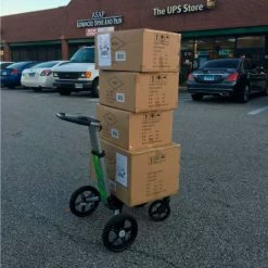 The Scout Cart will never leave you stranded. This premium folding cart is ideal for transporting supplies to and from home, office, school, stores and professional buildings. The telescoping aluminum frame folds compactly after quick-release baskets are removed. Cargo tray included for moving boxes, crates and bins. The comfort-grip handle adjusts from 36″ to 42″ so you can stand tall while walking. Ergonomic — rear wheel positions allow a natural walking gait. One year warranty.