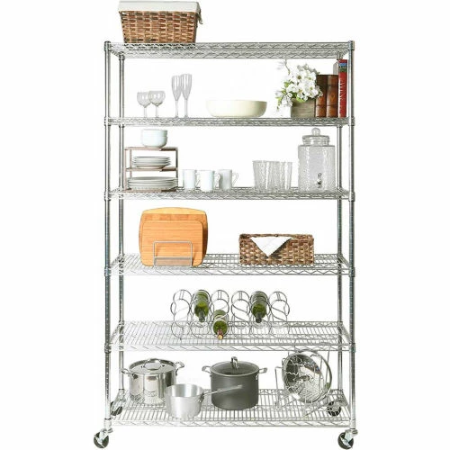 - 48″ x 18″ Ultra durable Commercial-Grade Shelves – includes 6 solid-steel wire shelves and 4 steel poles for heavy-duty multipurpose storage