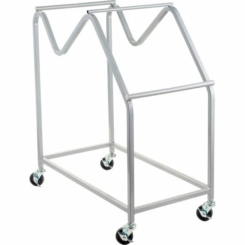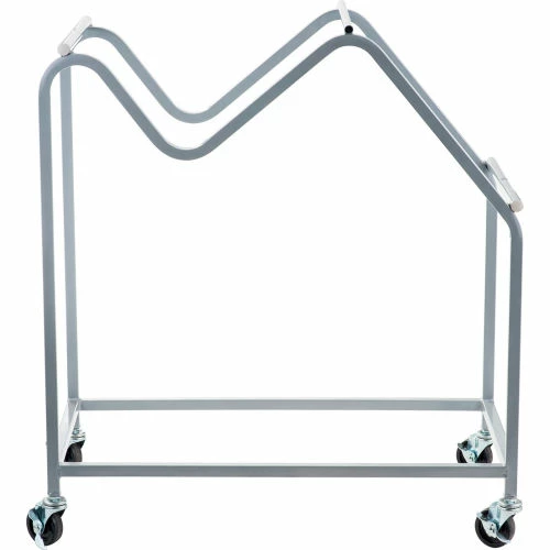 A cradle style dolly, the Model #DY87 is designed for storing and transporting the National Public Seating 8700 series “Cafetorium” chairs. This 12 1/2 lbs. unit has a 350 lbs. weight capacity, 7/8″ square tubing and OD round tubing, and has a grey powder coated frame finish. It can store or transport up to 35 chairs high.