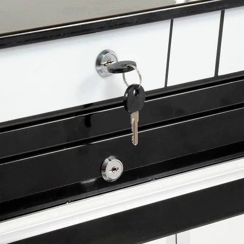 - The locking drawer and locking top are keyed the same, so the user only has one set of keys