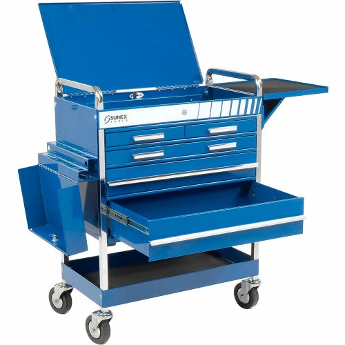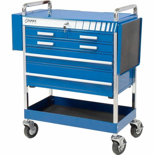 Sunex Tools 8045BL 27" Professional 5 Drawer Blue Tool Cart W/ Locking Top