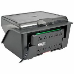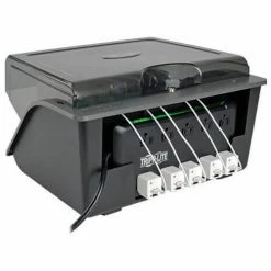 Devices fit into slots 1.25 inches wide. Their AC adapters plug into the 10 widely spaced NEMA 5-15R outlets as needed for proficient charging. The devices are protected by 2,880 joules of surge suppression and EMI/RFI noise filtering that protect against potentially harmful bursts in voltage. Diagnostic LEDs let you know that the charging station is grounded and the connected devices protected. An auto-shutoff feature cuts off power to the outlets in case of a power spike.