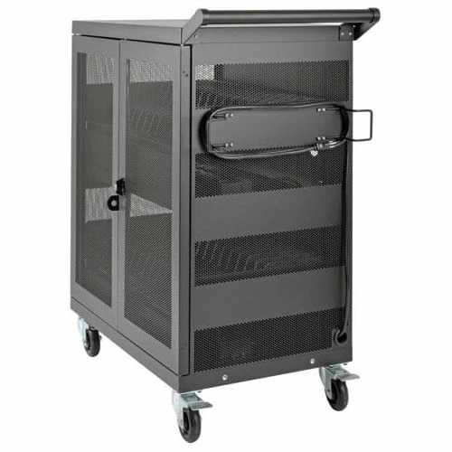 The cart promotes comprehensive device protection with steel construction and a black powder-coated finish for long-term durability. It locks with the included keys to help prevent device theft, damage or tampering, and flow-through ventilation helps prevent overheating.