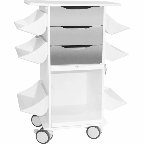 - 2 Locking & 2 Swivel 4-inch Twin Wheel Casters, 3 Total Locking Drawers, 6 Adjustable Side Shelves, Locking Bulk Storage with Sliding Drawer