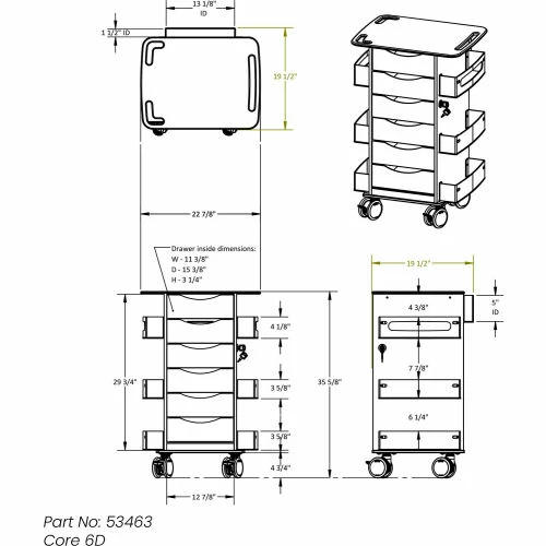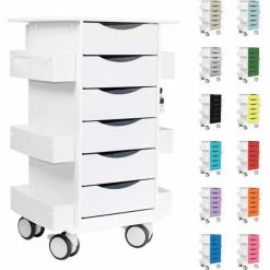 - 2 Locking & 2 Swivel 4in Twin Wheel Casters, 6 Full-Extension Total Locking Drawers, 6 Side Shelves, Tool/Chart Holder