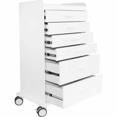 - 2 Locking Casters, 2 Swivel Casters, and 6 Total Locking Drawers
