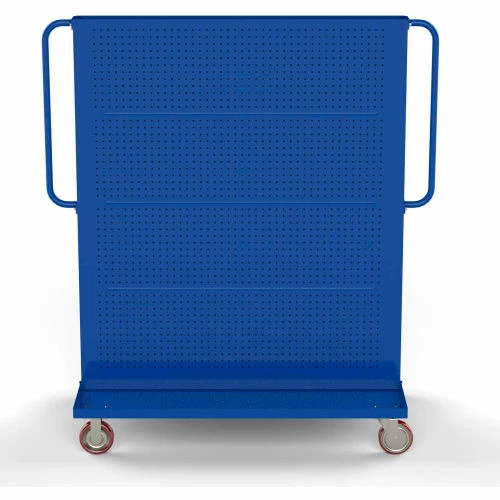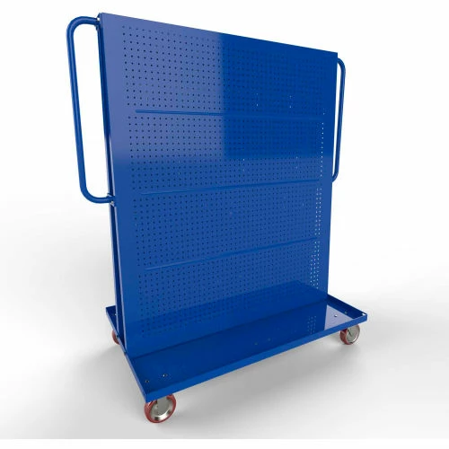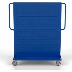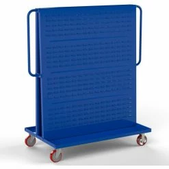 Valley Craft’s 48 in. Blue Modular A-Frame Bin Cart features 1 circle peg Pegboard Panel panel and 1 louver panel, heavy duty steel construction, 6 in. phenolic casters (2 rigid, 2 swivel) and a 2,000 lb. load capacity. Combine with standard hooks and bins for efficient organization of parts and supplies. Highly customizable and great for lean manufacturing and Kaizen events. Deck features a 1 1/2″ lip with 10″ of deck space on each side of the panel for extra storage. Optional floor lock available. Optional end panels can add up to 3,000-sq. inches of additional storage space. Bins are not included.