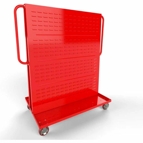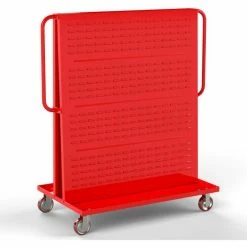 Valley Craft’s 48 in. Red Modular A-Frame Bin Cart features 2 louver panels, heavy duty steel construction, 6 in. phenolic casters (2 rigid, 2 swivel) and a 2,000 lb. load capacity. Combine with bins for efficient storage of bulk items like screws, nails and bolts. Highly customizable and great for lean manufacturing and Kaizen events. Deck features a 1 1/2″ lip with 10″ of deck space on each side of the panel for extra storage. Optional floor lock available. Optional end panels can add up to 3,000-sq. inches of additional storage space. Bins are not included.