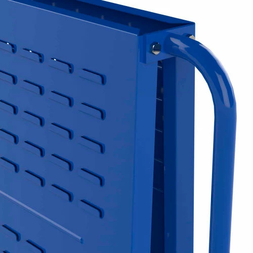 Valley Craft’s 36 in. Blue Modular A-Frame Bin Cart features 2 louver panels, heavy duty steel construction, 6 in. phenolic casters (2 rigid, 2 swivel) and a 2,000 lb. load capacity. Combine with bins for efficient storage of bulk items like screws, nails and bolts. Highly customizable and great for lean manufacturing and Kaizen events. Deck features a 1 1/2″ lip with 10″ of deck space on each side of the panel for extra storage. Optional floor lock available. Optional end panels can add up to 3,000-sq. inches of additional storage space. Bins are not included.