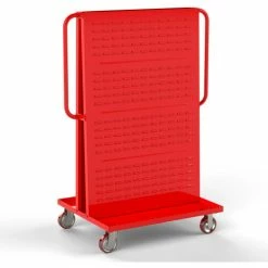 Valley Craft’s 36 in. Red Modular A-Frame Bin Cart features 2 louver panels, heavy duty steel construction, 6 in. phenolic casters (2 rigid, 2 swivel) and a 2,000 lb. load capacity. Combine with bins for efficient storage of bulk items like screws, nails and bolts. Highly customizable and great for lean manufacturing and Kaizen events. Deck features a 1 1/2″ lip with 10″ of deck space on each side of the panel for extra storage. Optional floor lock available. Optional end panels can add up to 3,000-sq. inches of additional storage space. Bins are not included.