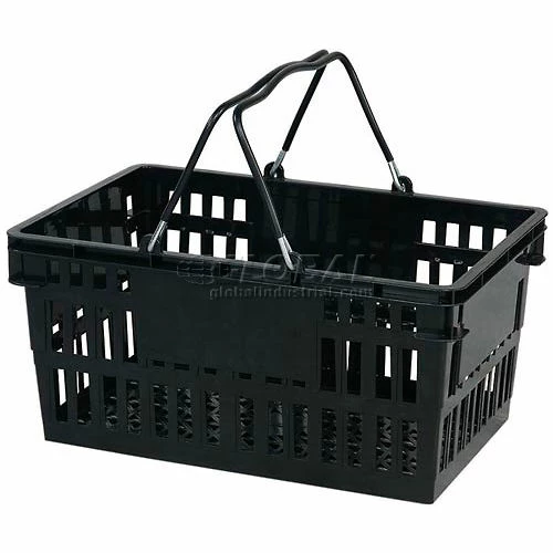 Plastic hand shopping baskets allow flush nesting for compact storage. Grocery Baskets are great for retail and shopping environments, as well as, stock and storage applications. Made of impact resistant polypropylene. Baskets include folding wire handles with comfort grip and hand holds in 2 ends for easy lifting. Built-in label areas for identification. Baskets can be easily nested on Hand Shopping Basket Stands (sold separately) for easy storage that creates a convenient pick-up and drop-off station in stores.