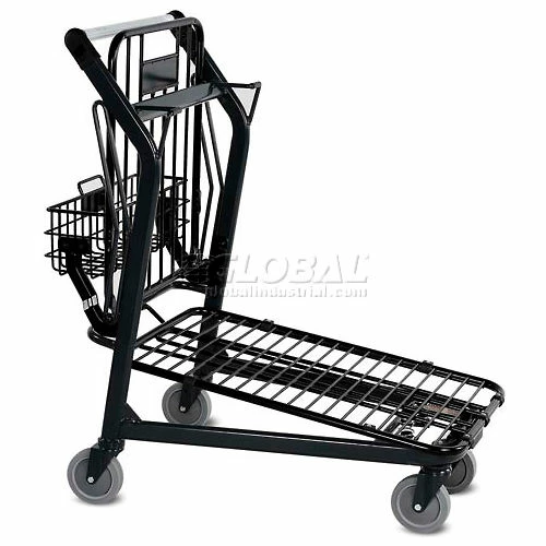 Innovative cart offers a retractable top shelf that slides out of the way when carrying larger cartons. Durable steel carts have a scratch-resistant powder coat finish and nest in only 9½” of space. Broad wheelbase offers maximum stability. Shipped assembled.
