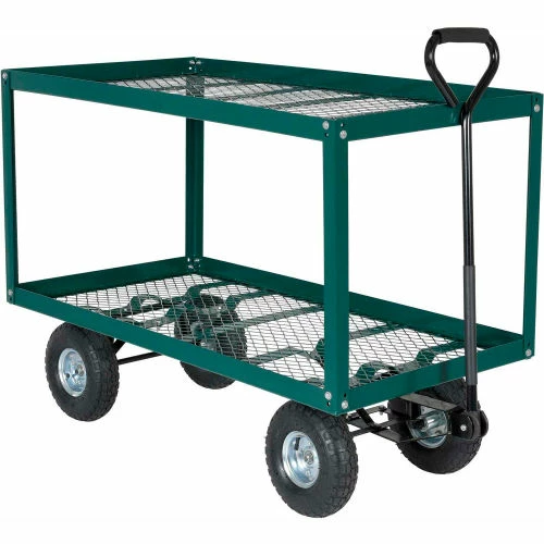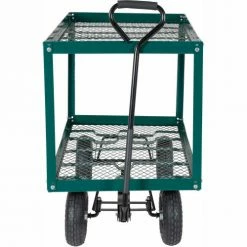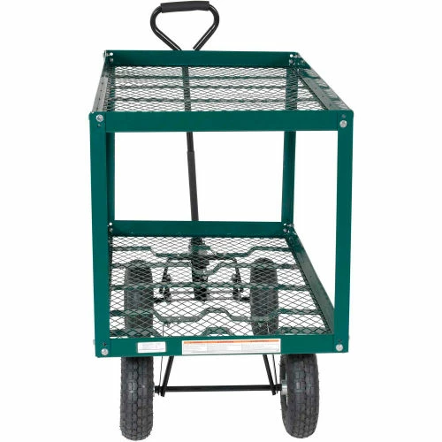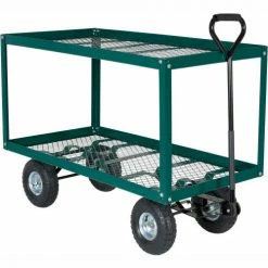 This Landscaping Cart transports plants, flowers, trees, shrubs, rocks, and similar materials or parts with ease. This cart is rugged and easy to maneuver with their large pneumatic tires. Features mesh bottom to allow dirt, small rocks, and water to drain through. Steel construction. All carts ship knocked down. Assembly required.