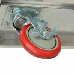 - Maneuverable on rubber, swivel plate, double ball race casters.